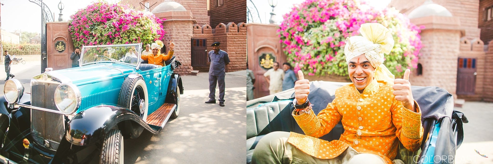 Ayush and Treta who lives in Bay area, California. Their wedding, held at Treta’s parental home, Jodhpur, known as Blue city of the country, was grand and Royal. It looked like it was a Fairytale wedding – with so much color ultra cute decor and a palace meets vintage car destination.The serene Khimsar Fort perhaps the perfect setting for a wedding like this.