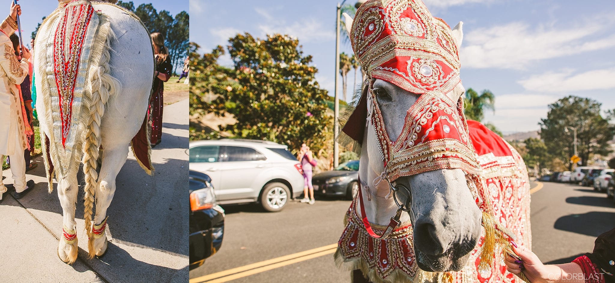 For the baraat, Anmol arrived to the ceremony on a beautifully decorated white horse. The guests danced around him to the beat of an Indian drum. Once Kiran and her family greeted the Anmol, the couple exchanged floral garlands that they wore around their necks as a symbol of their acceptance of each other.