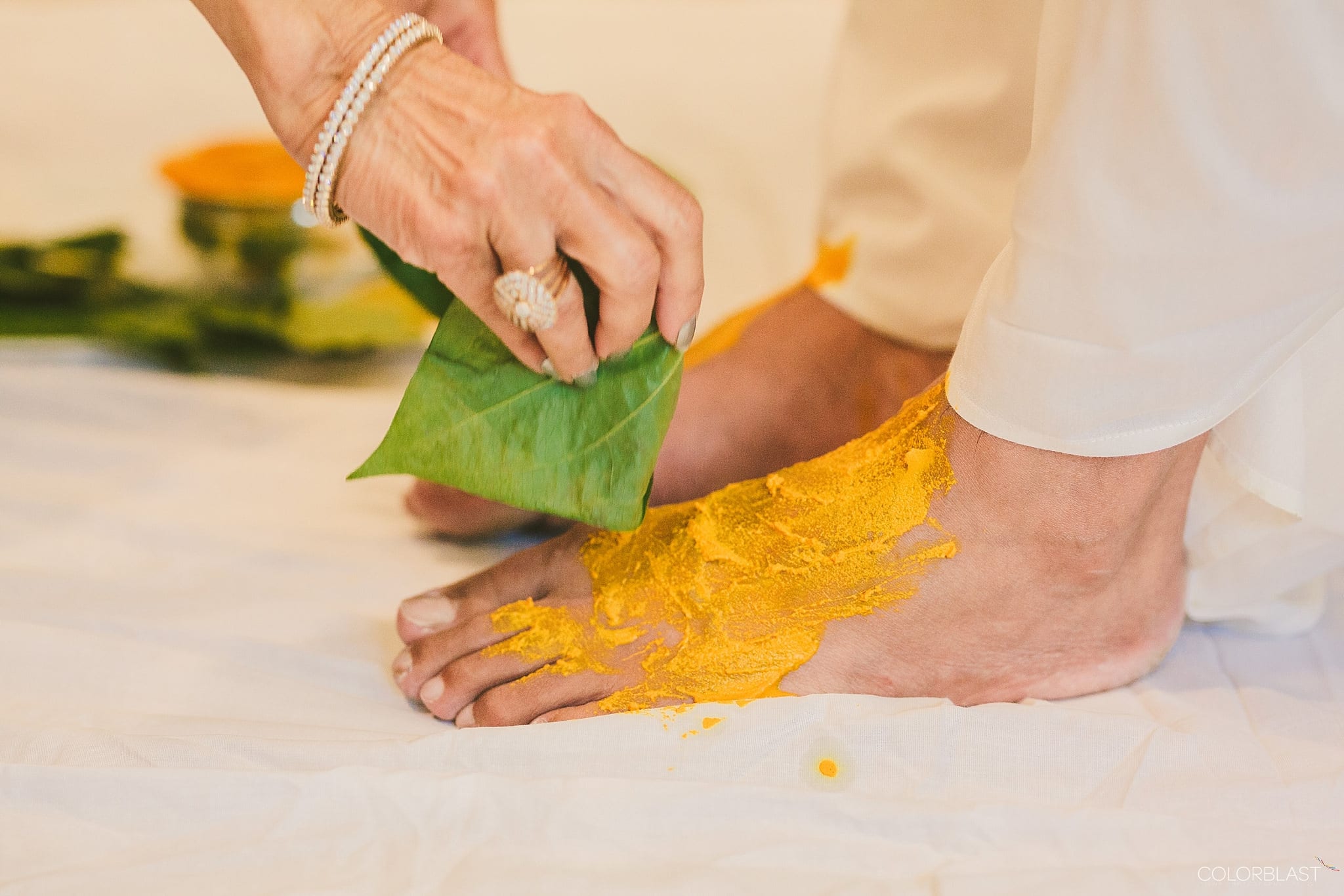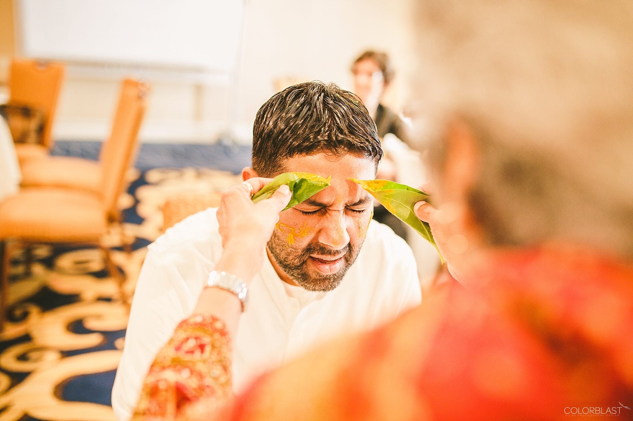 At the Maiya cleansing ceremony, the bride and groom sat down on stools as the turmeric paste was applied on their body. The female relatives held the red cloth over their heads. Other female guests sang traditional wedding songs. The ceremony was definitely one of the most fun occasions leading up to the wedding. It suffices to say that fun was had by all.